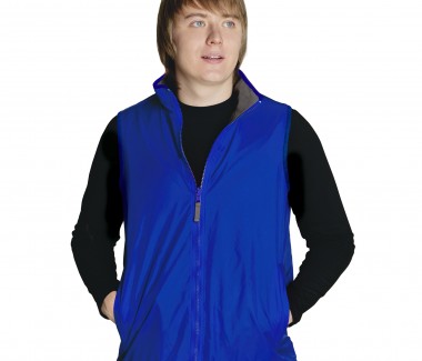 двусторонний мужской жилет два боковых кармана на молнии комфортные эластичные окантовки по краям флисовая сторона с потайным карманом для персонализации практичный водо- и грязеотталкивающий материал
