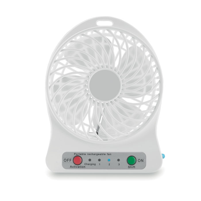 Настольный пластиковый вентилятор с тремя режимами работы. Работает от usb кабеля (включен). (2200 mAh) белый 10,5X4X14CM 0,185 нетто / 0,237 брутто KG ДОСУГ > ВЕНТИЛЯТОР Plastic